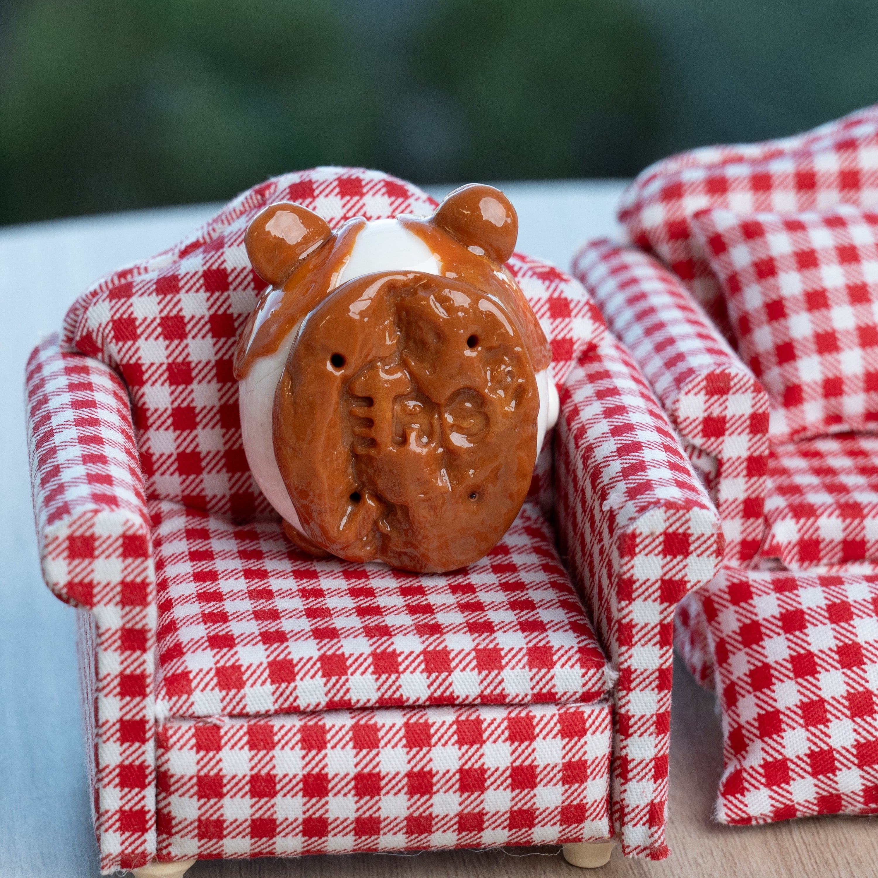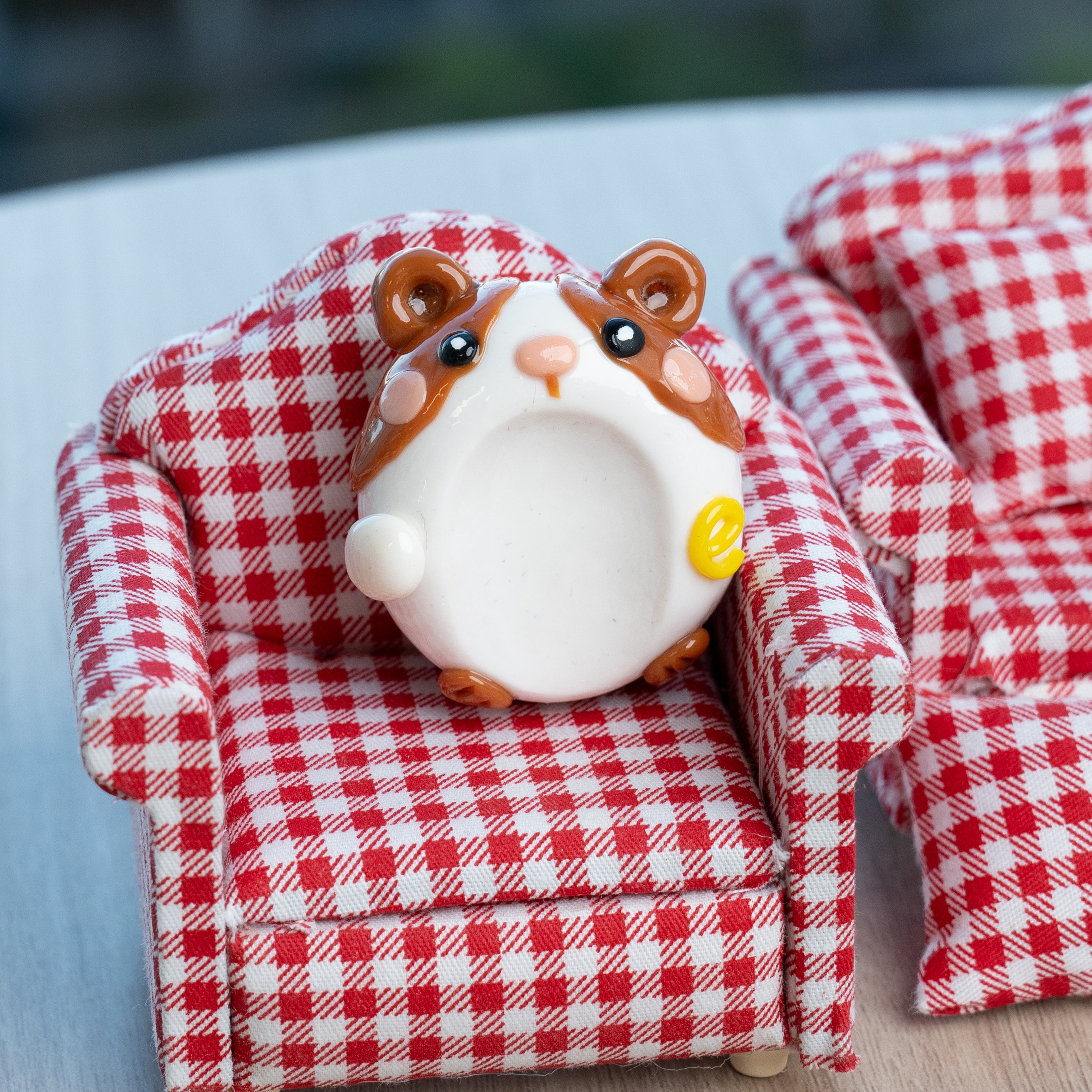 The guinea pig’s body is sculpted as one solid piece of polymer clay, ensuring durability while keeping the structure free from fragile small parts. On the front, its sweet face and rounded belly invite your thumb to rest, while the back carries the same lovable character with detailing that adds to its charm.