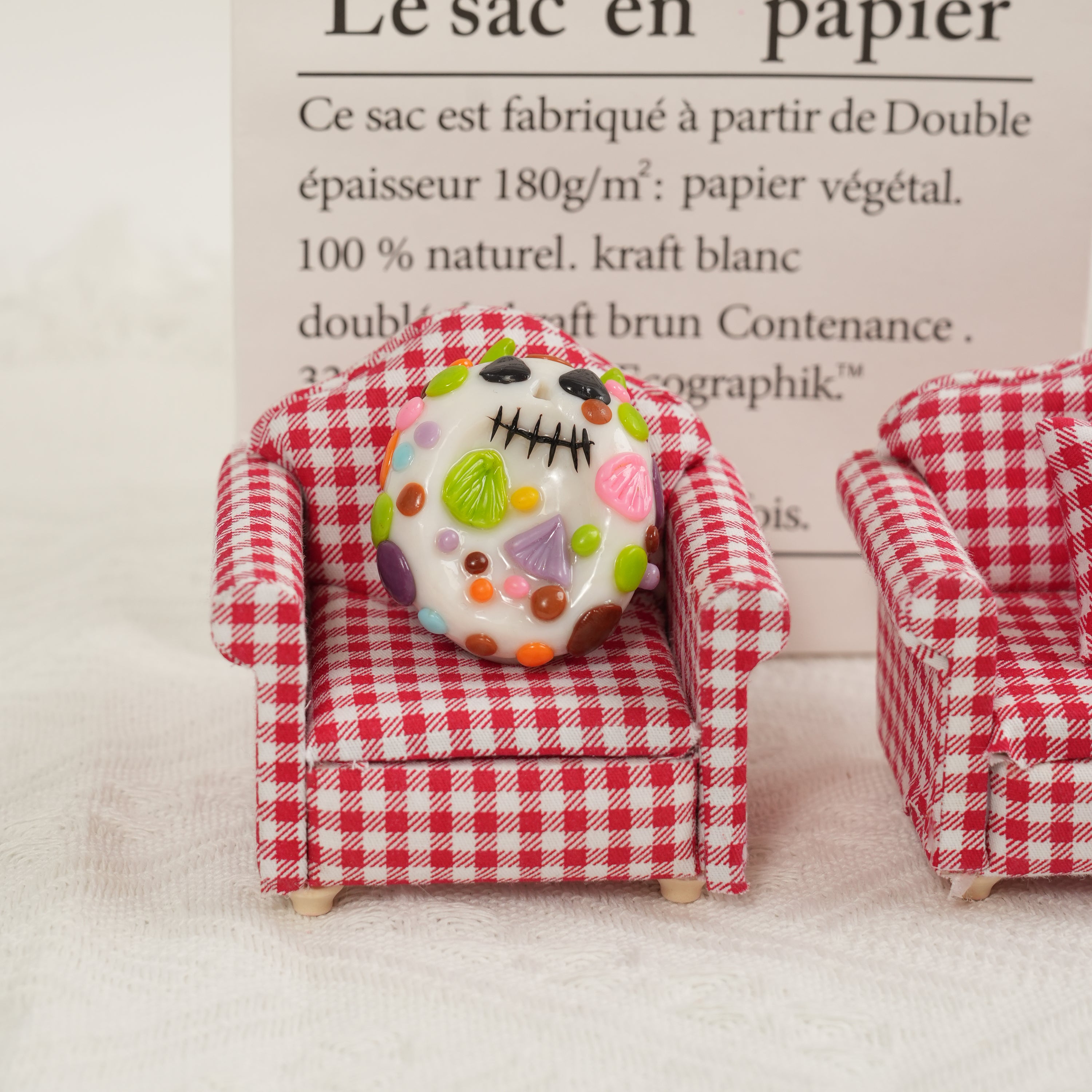 Festive Details – Candy dots, stitched mouth, and drippy slime bring a playful Halloween/Day of the Dead vibe.